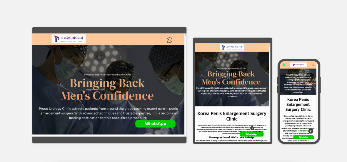 저희는 귀하의 웹사이트가 진료의 성격을 반영하도록, 디자이너들이 귀하의 고유한 요구 사항, 목표, 그리고 브랜딩에 맞춘 깨끗하고 아름다운 웹사이트를 만들기 위해 최선을 다합니다. 이러한 미적으로 매력적인 디자인은 홈페이지에만 그치지 않고, 귀하의 진료 개성이 사이트의 모든 부분에 자연스럽게 반영되어, 전체적인 일관성을 제공합니다.